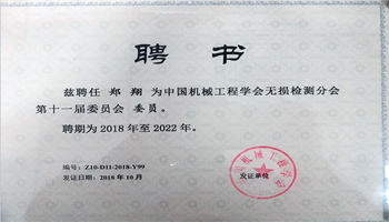 亞泰光電鄭總當(dāng)選中國機(jī)械工程學(xué)會無損檢測分會第十一屆委員會委員