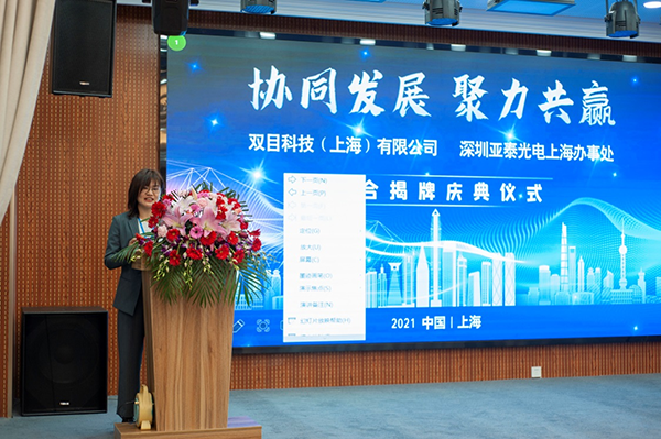 2021年3月27日,由深圳市亞泰光電技術(shù)有限公司主辦的“協(xié)同發(fā)展 聚力共贏”暨雙目科技(上海)有限公司、深圳亞泰光電上海辦事處聯(lián)合揭牌慶典儀式在上海市松江區(qū)新雅科創(chuàng)園順利舉行。